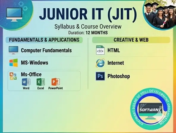 Softwant Board of Skill Development Organization has been registered under Govt. Of INDIA and CIN number is U74999WB2019PTC231898 which is run by Softwant Technologies Pvt. Ltd. Softwant collaboration with INFORMATION TECHNOLOGIES DIGITAL SAKSARATA MISSION (ITDISHA) under Govt. Of West Bengal. Our center is also certified by ISO 9001: 2015 Org & MSME. SOFTWANT-BOARD Logo is registered Trademark department, govt. Of India. Softwant provides training related to Computer Software, Hardware & Networking, and accounting course. Not only that provide many more courses please contact us!