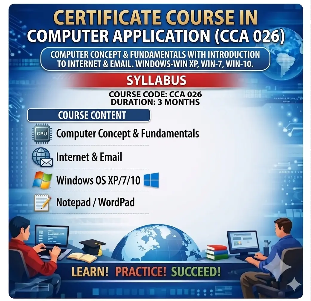 Course on Computer Concepts (CCC) is a basic computer training program designed to build a strong foundation in digital skills. This course covers computer fundamentals, including the basic concepts, functions, and everyday use of computers.